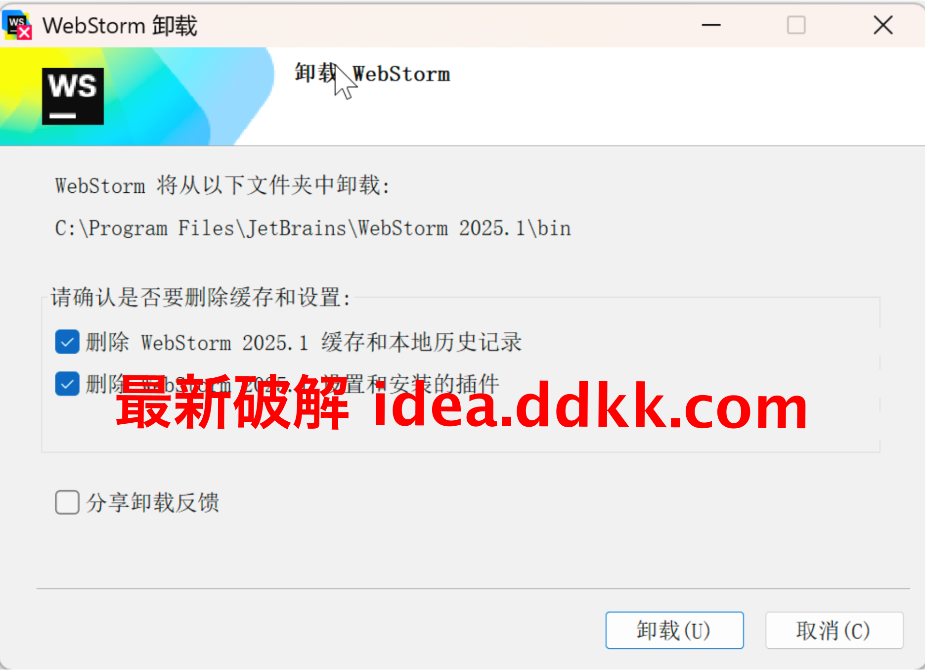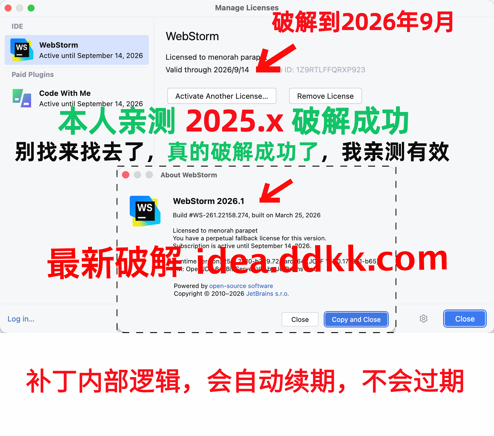 WebStorm 2026.1 破解补丁,不要移动位置,不要删除【否则破解失败】